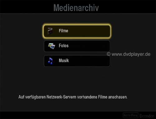 Der Player ist weiterhin mit einer Netzwerkschnittstelle ausgestattet um Musik, Bilder und Videos von einem PC abzuspielen.