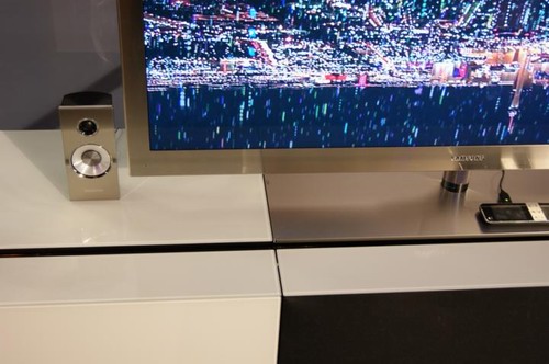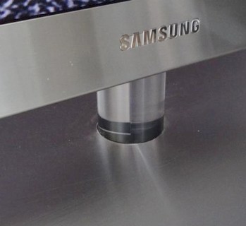 Der Samsung 9090 fällt sofort durch die unglaublich geringe Tiefe seines Panels von nur 7,98mm auf. Erreicht wird dies aber nur durch Unterbringung der Elektronik im Standfuß. Sowohl das Panel als auch der Standfuß sind in gebürstetem Aluminium gefertigt, hier werden keine dünnen Blenden auf Kunststoff geklebt, wie es z.B. die Macher aus Kronach bei ihren „Design Objekten“ machen, nein hier wird „massiv gebaut“.