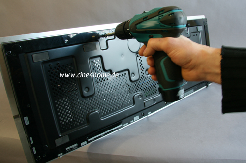 Nun aber zum interessanten Teil, da sich die Elektronik des Fernsehers im Standfuß befindet, wie bringt man das ganze System an der Wand an? Gehen wir nach der Anleitung vor: