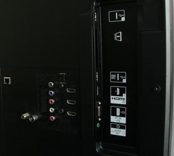 Die Anschlüsse befinden sich in diversen Ausführungen auf der Rückseite und an der linken Seite, Adapter werden hier nicht benötigt. Auch ein CI+ Schacht ist natürlich ebenfalls an Bord. Bei der Montage geht Sony eher konservative Wege, denn Der EX725 ist für die Verwendung einer Standard Vesa-Wandhalterung vorgesehen, durch seine Dicke von gut 4 cm trägt auch er nicht stark auf.