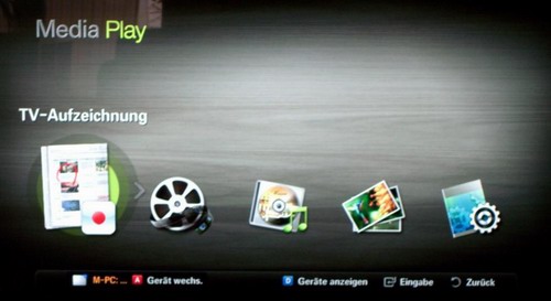 Der Samsung bietet eine DLNA Zertifizierung, was das Einbinden in ein Windows-Netzwerk beschleunigt. Über seinen Medien Player können sowohl Videos als auch Musik und Bilder über angeschlossene USB-Medien oder das Netzwerk wiedergegeben werden. Die Zugriffszeiten sind gut. Es ist auch problemlos möglich, eine Diashow mit Musik zu unterlegen, Playlisten können dazu auch erstellt werden. Über sein Internetportal ist es ferner möglich durch eine Vielzahl von Applikationen Zugriff auf Facebook, Twitter, Wetter und Nachrichtendienste sowie eine Vielzahl an Spielen zu erhalten (wobei wir uns statt der vielen Spiele lieber mehr sinnvolle Applikationen wünschen würden). Ein Internet Browser ist nicht enthalten und kann auch nicht per Software Update nachgerüstet werden.