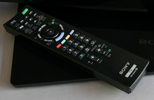 Die Fernbedienung des Sony kann hier natürlich nicht mithalten. Sie ist aus dem üblichen Kunststoff in mattem und hochglänzendem Schwarz gebaut. Die Reichweite und der Winkel sind sehr gut, was eine bequeme Bedienung unterstützt.