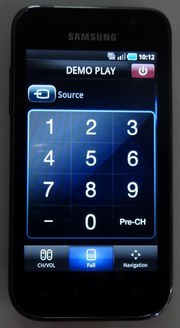 Die RMC 30 ist bidirektional ausgeführt. Das bedeutet, sofern sich der C9090 in einem Netzwerk befindet, können auch das laufende TV-Programm, Videos von einem Netzwerk-Rechner oder Bilder und Musik auf ihr wieder gegeben werden. Zu diesem Zweck sind sowohl ein Lautsprecher als auch ein Kopfhöreranschluss vorhanden. Die Kanalwahltasten sowie die Lautstärke sind als Hardkeys ausgeführt, alle anderen Tasten sind auf dem Touchpanel vorhanden. Eine blicklose Bedienung ist so natürlich nur schwierig. Die FB ist, wie man es nicht anders erwarten sollte, in Aluminium und Glas gefertigt. Verschweigen sollte man aber nicht, dass sie jeden Abend aufgeladen werden sollte, da sie recht energiehungrig ist. Weiterhin ist in unseren Testreihen aufgefallen, dass die RMC30 gerne einmal den Kontakt zum Netzwerk verliert und dann erst neu eingebunden werden muss. Der Winkel und die Reichweite sind bei Verwendung über IR durchschnittlich, bei drahtloser Netzwerkverbindung natürlich exzellent.