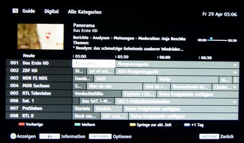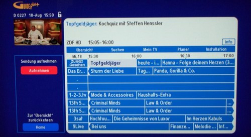 Das EPG gehört aber wieder einmal zur Sorte, die erst bei Empfang des entsprechenden Senders Daten lädt und damit eine kleine Wartepause verlangt. Wünschenswert wäre hier etwas Internetbasiertes. Da eine Aufnahmemöglichkeit in den EX725 integriert ist, sollte auch das EPG hier nicht nachstehen.