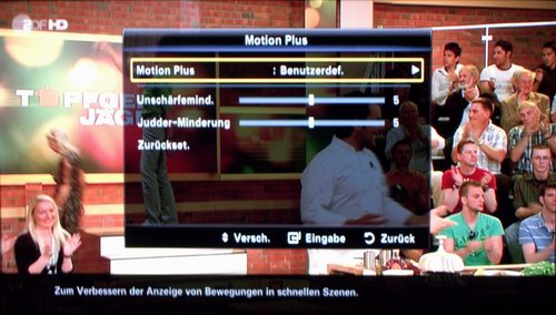 Der Samsung produziert leichtes „Ghosting“: Das bedeutet, Objektkanten werden doppelt dargestellt und erscheinen so unscharf und reduzieren den räumlichen Tiefeneffekt. Zwar kann man versuchen, im Bildmenü die Darstellung auf das persönliche Sehempfinden anzupassen, doch wie bereits erwähnt, sind die Möglichkeiten der Optimierung begrenzt. Und auf mehreren Zuschauern gleichzeitig lässt sich ein 3D-Bild ohnehin nicht zeitgleich „kalibrieren“. Oft werden Ghosting-Effekte aber auch durch ein schlechtes Mastering von der Softwareseite her ausgelöst.