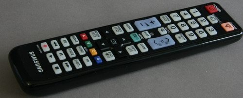 Die Fernbedienung präsentiert sich in typisch mattem Kunststoff und stellt nicht gerade ein designtechnisches Wunder dar. Tasten für Formatumschaltung, Untertitel sowie dem Mediaplayer oder Internet-TV sind direkt ausgeführt, doch das Layout ist insgesamt sehr unübersichtlich ausgefallen und erschwert die intuitive Bedienung. Immerhin ist sie beleuchtet, was die Bedienung in dunklen Räumen erleichtert.