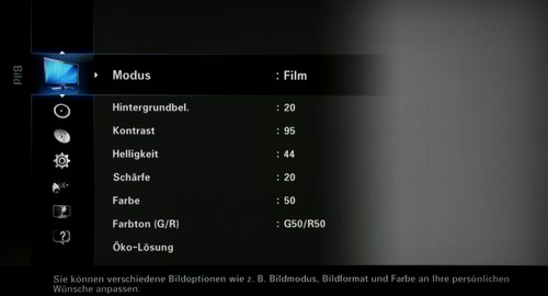 Weiterhin kann man in den Einstellungen noch den Blickwinkel und die Intensität der Effekte regeln, in der Praxis erwiesen sich die Auswirkungen dieser Einstellungen aber als so geringfügig, dass man es auch bei den Werkseinstellungen belassen kann.