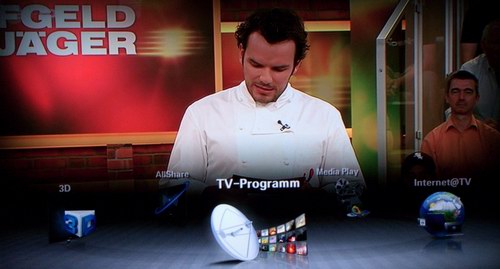 Durch die Content Taste der FB kann man schnell zwischen dem Mediaplayer, dem Internet und den 3D Funktionen hin und her schalten, die grafisch schön animiert ist. Die Senderliste bietet die zweite Möglichkeit, zwischen analog und digital zu wechseln. Leider gibt es keine Umschaltung zwischen TV und Radio.