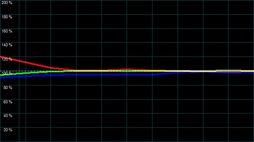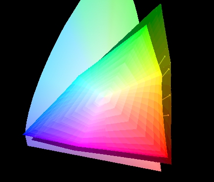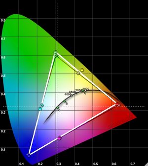 . Puristen werden zu Gunsten der Farbgenauigkeit einen auf die Videonorm kalibrierten Bildmodus / Farbraum bevorzugen. Dessen waren sich auch die Ingenieure bewusst und bieten mit dem Preset "Film" eine Abstimmung der Grundfarben auf die Videonorm, wie diese Messung zeigt.