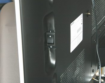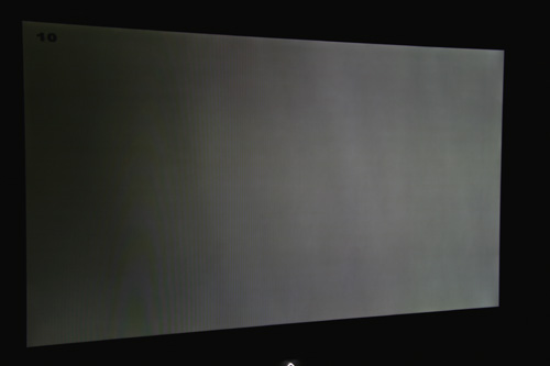 Auch der Sharp 46LE820 ist nicht ganz frei von LCD-typischen Artefakten, allerdings beschränken sich diese bei ihm hauptsächlich auf nur zwei Aspekte: 1) Ausleuchtung: Unser Hauptkritik trifft die LED-Edge Beleuchtung, die nur bei direkter Aufsicht eine homogene Ausleuchtung erlaubt. Schon bei geringen Abweichungen von der senkrechten Sichtachse, wird die Ausleuchtung ungleichmäßig, wie man in dem (nicht nachbearbeiteten!) Foto erkennen kann.