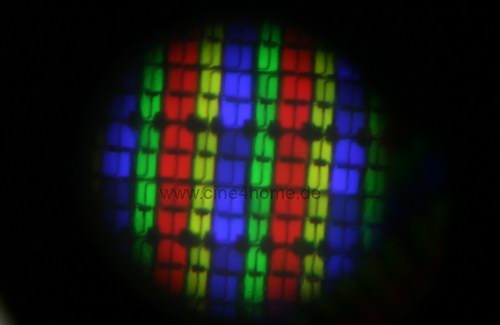 Wir kommen zum Bildtest, der aufgrund der neuen Quattron Technologie besonders spannend ist: Zunächst sind wir neugierig und riskieren einen besonders genauen Blick auf die Pixel im Panel, durch ein Vergrößerungsglas: