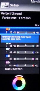 Wie schon bei den Grundfarben empfiehlt sich das Preset „Film“ in Kombination mit der Farbtemperatur „tief“ für eine möglichst genaue Mischung der Grundfarben: