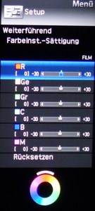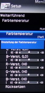 Um ab Werk eine möglichst natürliche Wiedergabe zu erreichen, sollte man die Einstellung „Film“ wählen. Diese hält sich in ihren Grundfarben (Rot, Grün Blau) bereits recht gut an die REC.709 Norm.