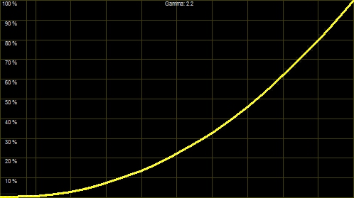 4.2.2 Gamma In der Einstellung „Allgemein, Standard, Farbbrillianz, Warm2 hat der Sony eine fast ideale Gammakurve von 2.2, wie sie von unseren Videonormen vorausgesetzt wird: