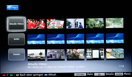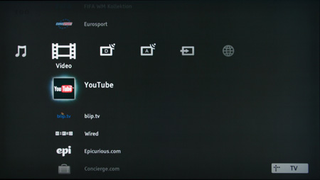 Videos aus den Internetprogrammen werden schnell ausgeführt. Die Qualität ist aber durchwachsen, da kein HD Content angeboten wird. Der YouTube Client lädt schnell, aber die Qualität ist ebenfalls recht dürftig, da YouTube HD nicht unterstützt wird. Weiterhin ist eine Suche über die Fernbedienungs-Tasten oder das Keyboard Menü recht langwierig.
