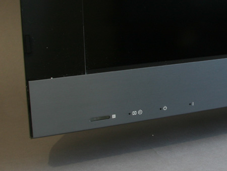 Auf den unteren Teil des Rahmens ist eine gebürstete Aluminiumleiste aufgeklebt, die Bildfläche ist deutlich entspiegelt und folgt zum Glück nicht dem derzeitigen „Glanz“-Trend.