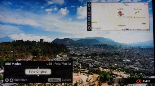 Hervorzuheben beim Sony ist wieder einmal die extrem gute Wiedergabe von Fotos: So sind GPS Tags schön auf einer Karte eingebunden und auch die diversen Scaler-Möglichkeiten und Rauschunterdrückungen sind zuschaltbar. Insgesamt ist die Foto Wiedergabe bis auf die Farbgenauigkeit auf Referenz Niveau.
