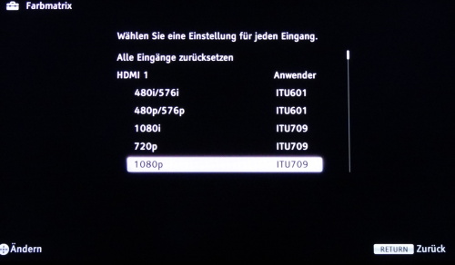 Und wieder müssen wir wieder eine Menü-Exkursion betreiben: Der HX 85 hat die Möglichkeit, die Signalverarbeitung auf „Grafik“ oder „Video“ zu optimieren. Warum diese Einstellung werksmäßig allerdings auf Grafik steht, erschließt sich uns nicht. Dies sollte im Menüpunkt: „Video Eingangseinstellungen“ für alle Eingänge optimiert werden.