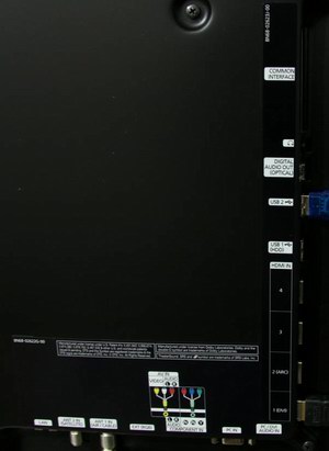 Die Anschlüsse auf der linken Seite sind gut zu erreichen (siehe Bild oben). Es stehen großzügige 4 HDMI Anschlüsse zur Verfügung, bei denen aber darauf zu achten ist, dass nur HDMI 2 mit Audio Return Channel und HDMI 1.4 ausgestattet ist. USB Terminals liegen in zweifacher Ausführung vor, damit hat man bei Verwendung des optional erhältlichen WLan USB Adapters ohne Umstecken einen weiteren Anschluss für eine Festplatte oder einen USB Stick zur Verfügung. Scart sowie AV und Komponentevideo erhalten hingegen leider nur über mitgelieferte Adapter Anschluss, ein Tribut an die schmale Bauform. Abschließend stehen sowohl ein VGA als auch ein CI+ Slot zur Verfügung, komplettiert wird das Anschlussfeld mit einem Kopfhörer Ausgang, einem LAN – Kabel Anschluss, einem Digital Out via Lichtleiter und einem Audio Eingang, um z.B. bei Anschluss eines PC (VGA/DVI) auch den Ton übertragen zu können.