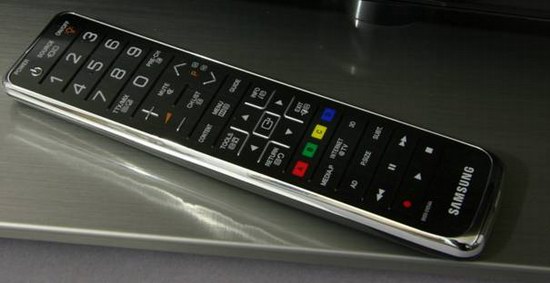 Die Fernbedienung wirkt sehr ansprechend und ist hochwertig verarbeitet. Die Front besteht aus einer dünnen Lage Aluminium, in das die Symbole druckempfindlich eingearbeitet sind. Die Seite ist von einem Hochglänzenden Kunststoff umgeben, die Rückseite ist in schwarzen Hochglanz Kunststoff in Klavierlack Optik ausgeführt. Alle Tasten sind beleuchtet, aber erst bei Druck, eine generelle Möglichkeit der Beleuchtung bei Bewegung oder über eine eigene Taste ist nicht gegeben.. Die Reichweite und der Arbeitswinkel sind sehr gut, der Fernseher reagiert sehr schnell auf die Befehle.