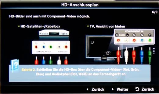 Es gibt eine ausführliche schriftliche Bedienungsanleitung. Viele Punkte, wie die Applikationen im Internet TV oder Anschlusshilfen, sind zudem auch über den Fernseher darstellbar. Das Menü ist dabei grafisch recht ansprechend gestaltet, so dass auch Neulinge sich schnell zurechtfinden.