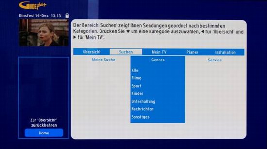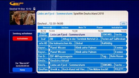 Zwei EPGs stehen zur Auswahl, man kann zwischen einem Samsung EPG (welches sehr rudimentär ist und auch erst lädt, wenn man sich auf dem Sender befindet) und dem System „Guide+“ wählen, in letzterem ist auch die manuelle Aufnahmeprogrammierung versteckt. Es können hier diverse Suchfunktionen ausgeführt, als auch persönliche Profile erstellt werden. Dieses System bietet insgesamt einen echten Mehrwert gegenüber den meisten anderen Lösungsansätzen, hier gewinnt der Samsung Fernseher Pluspunkte.
