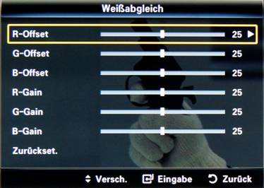 Wie von Samsung in diesem Jahr nicht anders erwartet, bietet auch der PS50C7790 sowohl RGB-Regler für einen Weißabgleich, als auch ein voll funktionsfähiges Color Management System.