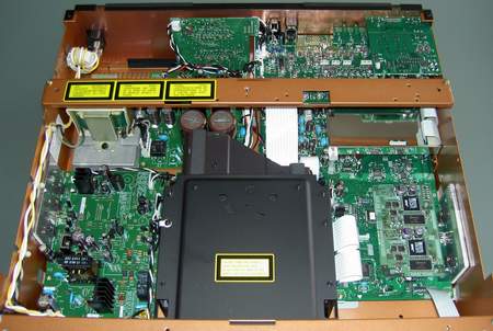 Keinerlei Wünsche offen lässt die Anschlussseite. Alle analogen Bild- und Tonanschlüsse sind doppelt vorhanden: 2 x Audio-Stereo (Cinch), 2 x Composite (Cinch), 2 x S-Video (Hosiden), 2 x SCART und 2 x YUV, alle in goldener Ausführung. Besonders lobenswert sind die BNC Stecker für einen der zwei YUV- Ausgänge, er ist damit gerade für eine hochwertige Verkabelung im High-End Heimkino perfekt geeignet. Neben den analogen sind natürlich die digitalen Ausgänge ebenfalls sehr wichtig. Auch hier wird alles notwendige geboten: 1 x Koaxial (Cinch), 1 x optisch (Tos-Link), 2 x IEEE 1394, 1 x D-Link und "last but not least": 1 x DVI. Eine RS-232C Schnittstelle für die externe Mediensteuerungen runden