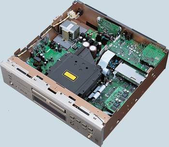 Auch der DVD-A11 präsentiert sich im "altgewohnt" schlichten Denon Design. Nur die großen Abmessungen (434x139x434 mm) und das enorme Gewicht von 12,8 kg lassen auf die "inneren Werte" schließen. Die Verarbeitung wirkt dank des Vollmetallgehäuses mit stabiler Aluminiumfront, wahlweise in Schwarz oder Gold lieferbar, sehr hochwertig. Nur die Plastik-Schublade des DVD-Laufwerks sowie die Plastik-Bedienknöpfe werden der Preisklasse nicht ganz gerecht. Öffnet man das Gerät, zeigt sich, woher das Gewicht kommt: Der mechanische und elektronische Aufbau ist durch Multilayer-Gehäuse, diskrete Schaltkreise und eine unabhängige Stromversorgung mit hochwertigen Bauteilen gekennzeichnet.