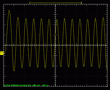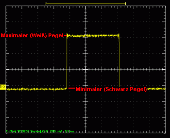 Durch die begrenzte Auflösung unserer Bildaufnahme sind die Linearitätsschwankungen nur schwer zu erkennen. Besser sieht man dies am Oszilloskop-Graph: