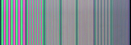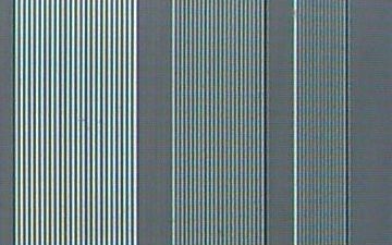 interpolieren. Die Magenta / Grün - Farbbalken bleiben bis zu höheren Auflösungen farbenfroh und deutlich voneinander getrennt. Erst ab 2,5MHz sind deutliche Ungenauigkeiten zu erkennen. Hier wird teilweise Farbe "verschluckt".