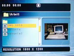 des De-Interlacers deutlich. JPEG Wiedergabe Ein besonders lobenswertes Feature ist die Wiedergabe von JPEG Dateien, wie sie z.B. von Digitalkameras erzeugt werden. Im Nu liest das ansprechende Menu ale Verzeichnispfade ein und erstellt sogar kleine Preview-Bilder von den Fotos. Die Anzeige kann sowohl einzeln als auch als Diashow erfolgen. Dabei stehen dem Anwender nützliche Funktionen wie Bilddrehung / Spiegelung und Zoom zur Verfügung. Als besonderer Gag ist die zeitgleiche Wiedergabe von MP3 und JPEG Dateien möglich, sofern sie sich auf der selben Disk befinden: Zuerst wählt man ein Musikstück seiner Wahl, dann kann mit der Musik im Hintergrund die Slide-Show aktiviert werden.