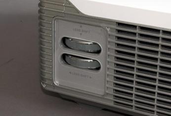 Acer versucht diesen Limitationen mit einem optischen doppelten Lensshift entgegenzuwirken, der bequem auf der linken Seite durch große Räder horizontal und vertikal justiert werden kann. Allerdings sind die Spielräume deutlich eingeschränkt (15% links / rechts, 12,5% hoch / runter), so dass hiermit lediglich kleinere Korrekturen bei nicht perfekter Zentrierung des Projektors im Raum ausgeglichen werden können. Die Flexibilität von anderen Techniken wird nach wie vor nicht erreicht.