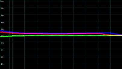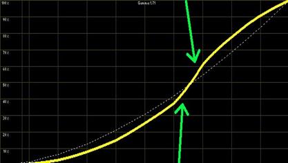 Leider arbeitet die Blende nicht ohne sich in diverser Hinsicht bemerkbar zu machen: Auf der einen Seite ist sie beim Nachregeln deutlich hörbar, auf der anderen Seite findet kein effektiver Gammaausgleich statt, wie man unserem Messdiagramm entnehmen kann: