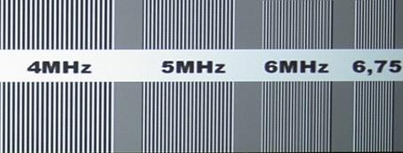 Ähnlich gut sieht es in der Skalierung aus: Im Falle von herkömmlicher PAL-Zuspielung rechnet der Projektor die Auflösung adäquat auf seine native Pixelzahl um, lediglich im schwierigen Auflösungsbereich um 6MHz zeigen sich leichte Lineritätsschwankungen: