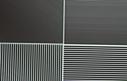 Die maximale Schärfeausbeute wird bei einem FullHD Projektor dann erzeugt, wenn er pixelgenau mit FullHD Bildmaterial angesteuert wird. Wir haben entsprechende Testbilder dem H9500 zugespielt, um zu überprüfen, ob er FullHD auch wirklich pixelgenau abbildet.