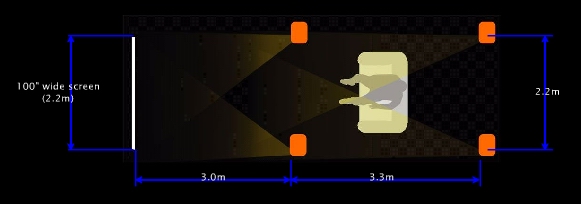 Wie man der Tabelle oben entnehmen kann, ermöglicht der TW1000 schon aus einem Projektionsabstand von 3m die im Heimkino gängige Bildbreite von 2,2m. Somit sind auch in kleineren Wohnräumen angemessene Kinobildgrößen realisierbar. Aber auch wenn man besonders große Abstände benötigt, kann man den TW1000 ohne Einschränkungen einsetzen. Dieselbe Bildbreite kann auch aus 6,3m Abstand projiziert werden.