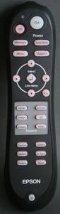 In drei Abschnitten befinden sich jeweils Tasten einer Themengruppe, dazwischen das Navigationskreuz. Besonders lobenswert sind die Eingangs-Wahltasten, so dass man direkt auf die gewünschte Quelle umschalten kann. Die Fernbedienung liegt gut in der Hand, alle Tasten sind bequem mit dem Daumen zu erreichen und der Infrarotsender funktioniert reflektiv über die Leinwand auch auf größere Entfernungen. Zudem kann in dunklen Räumen eine elektrische Beleuchtung mit einem Knopfdruck zugeschaltet werden.