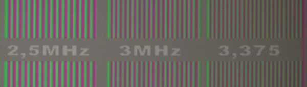 Selbst der schwierige Auflösungsgbereich um 6MHz zeigt kaum Interferenzen in der Skalierung auf. Zudem sorgt der geringe Pegelabfall in hohen Auflösungen dafür, dass auch kleinste Details gleich hell erscheinen, wie große. Dadurch wird die Schärfe des Bildes sichtbar gefördert.