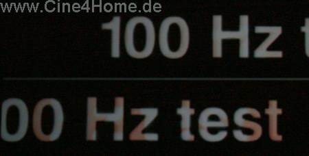 3.9.4 Chroma-Timingprobleme (roter Delay) provozieren Nachzieheffekte und reduzieren Schärfe Im Laufe unseres Tests stießen wir auf ein vollkommen neues Artefakt, das noch kein von uns getesteter LCD-Beamer vorher hatte. Die Ansteuerung der drei Farbkanäle scheint nicht richtig synchronisiert, rot eilt den anderen Farben voraus. In schnellen Bewegungen werden so unscharfe, rote Kanten provoziert.