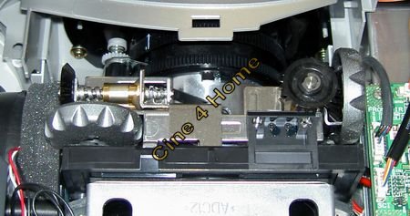 Auf eine digitale Trapezkorrektur, die zwangsläufig zu Einbußen in der Detailauflösung führen würde, kann somit komplett verzichtet werden. Im Inneren des Projektors wird die Aufwändigkeit der Mechanik, die die gesamte Optik verschiebt, deutlich: