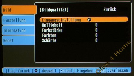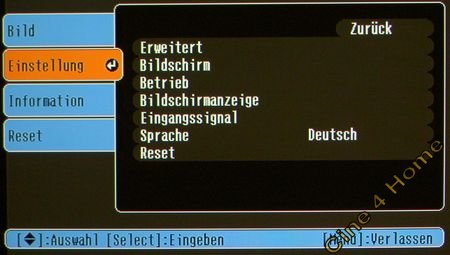 2.1 On-Screen-Menüs Die Onscreen-Menüs sind hoffnungslos verschachtelt und selbst nach längerer Eingewöhnungszeit nicht wirklich praktisch zu bedienen. Die Bildparameter sind nicht logisch in Rubriken gegliedert, sondern verteilen sich in vielen nichtssagenden bzw. zu technisch formulierten Ober-Menüs. Ein gutes Beispiel hierfür ist die "Helligkeits-" Regelung des Bildmenüs. Hierhinter verbirgt sich z.B. nicht etwa der elektrische Pegelabgleich für den Schwarzwert wie bei jedem anderen Projektor auf dem Markt, sondern tatsächlich die Regelung der Lampenhelligkeit. Man bemerkt dies, wenn man den Regler auf ein Minimum regelt und der Lampenlüfter auf einmal in den Sparmodus schaltet. Die Bezeichnung "Lampenregelung" wäre hier aussagekräftiger und präziser gewesen. Auch fehlt der gängige Regler "Kontrast" zum Abgleich des Weißpegels. Wer diese Funktionen sucht, wird in dem Untermenü "Eingangseinstellung" fündig. Hier finden sich Regler für Schwarz- und Weißpegel. Derartige Verschachtelungen und umständliche Bezeichnungen sind gerade für den Heimkino-Neueinsteiger verwirrend und erleichtern die Bildkalibrierung in keiner Weise. Ein weiteres Beispiel ist die Anpassung des Overscans. Sie befindet sich nicht in etwa im Bildmenü, sondern verbirgt sich im Bereich "Einstellung" und dort wiederum verschachtelt im Untermenu "Erweitert". Auch ist sie nicht klar mit "Overscan" bezeichnet, sondern umschrieben durch das Wort "Ausgangsskalierung", dessen Sinn sich nach unserem Verständnis nicht erklären lässt. "Ausgangsskalierung: Größer" bezeichnet dann den erwünschten Bildmodus frei von Overscan. Trotz aller Unübersichtlichkeit glänzt der TW200 aber mit einer