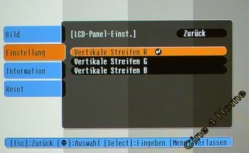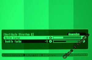 im Bildmenü die Option "Vertikale Streifen". Aktiviert man sie, schaltet sich automatisch ein Graustufentestbild ein und man kann den Helligkeitsabgleich für jedes Panel einzeln (RGB) durchführen.