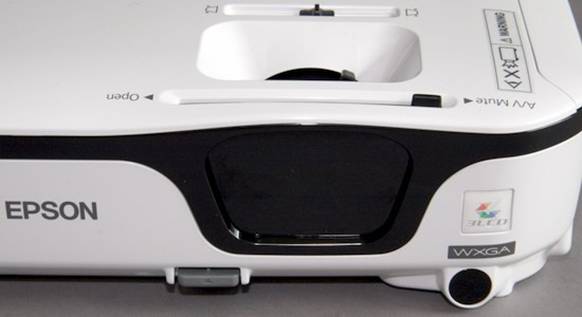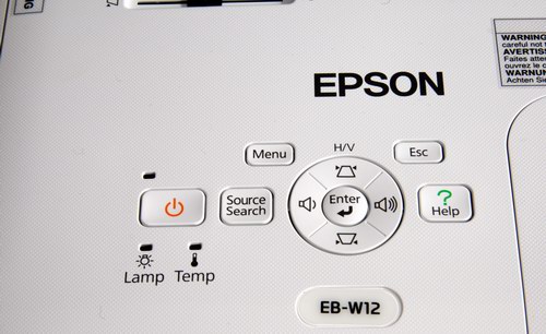 Auf einen optischen Lensshift, wie er bei LCD-Heimkinoprojektoren fast schon die Regel ist, wurde im Falle des EB-W12 verzichtet und durch eine doppelte Trapezkorrektur ersetzt: Vertikal erfolgt diese automatisch, horizontal hingegen manuell mit dem praktischen Slider auf der Geräteoberseite.