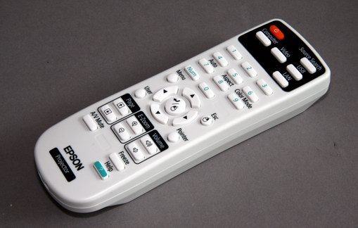 Die Bedienung erfolgt bequem per Fernbedienung, die sehr kompakt aber vielseitig gestaltet ist. Die gute Strukturierung nach Themengruppen macht eine schnelle Bedienung möglich, die Übertragung der Steuersignale erfolgt zuverlässig, auch ohne dass man die Fernbedienung direkt auf den Beamer richten muss. Alternativ kann die Steuerung auch direkt am Gerät erfolgen, dafür befinden sich alle relevanten Tasten direkt auf der Oberseite.