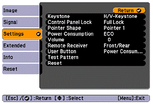 Die restlichen Kategorien beschäftigen sich vornehmlich mit der Einrichtung des Projektors bei der Installation und Signalzuspielung. Erwähnenswert sind die Formatumschaltung und der wählbare Lampenmodus.