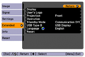 Soweit die Bedienungshardware, die passende „Software“ zeigt sich in Form des On Screen Menüs, das die von Epson typische Kategorien-Struktur aufweist.