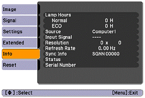 In sechs Hauptkategorien sind hier alle Funktionen nach Themen sortiert. Besonders wichtig ist hierbei das Bildmenü, das im Falle des EB-W12 auf das notwendige Minimum reduziert ist. Neben den obligatorischen Standardfunktionen wie Helligkeit, Kontrast und Schärfe ist lediglich die Farbtemperatur noch beeinflussbar, die Einstellungsvielfalt eines aktuellen Heimkinoprojektors wird bei weitem nicht erreicht.