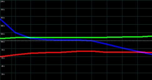 Wirklich hervorragend fällt die Gammajustage ab Werk in dem Modus „Theater“ aus: Mit einem Anstieg von 2,2 entspricht die Helligkeitsverteilung genau der Videonorm und gewährleistet eine gute Durchzeichnung in dunklen Bereichen sowie eine glaubwürdige Bildkomposition. Dies ist auch notwendig, denn der Projektor bietet mangels Einstellmöglichkeiten keinerlei Möglichkeiten der nachträglichen Gammakorrektur.