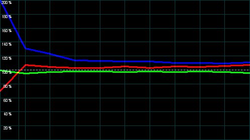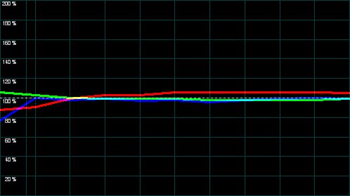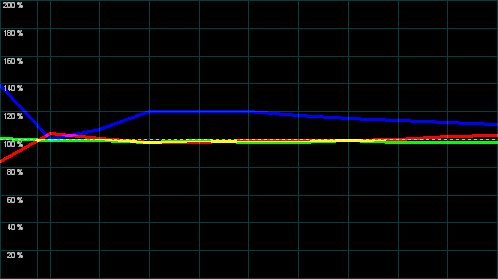 Wichtig für die Farbdarstellung ist vor allem auch die Weißmischung (R+G+B) auf die von der Videonorm vorausgesetzte Farbtemperatur von 6500K / D65. Diese Abstimmung fällt ab Werk selten perfekt aus, sollte aber zumindest durch die Bildparameter ermöglicht werden können.